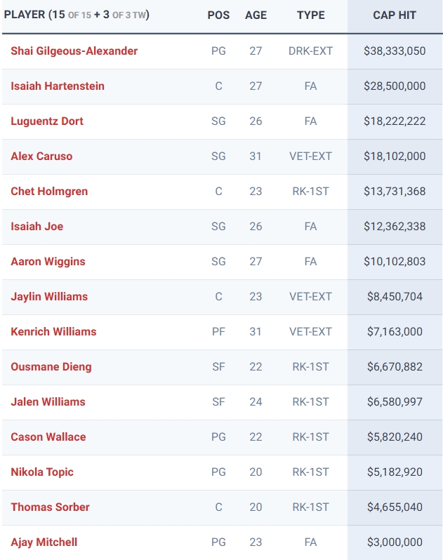 10月19日訊 雷霆25-26賽季的18個(gè)名額正式拉滿:15份正式合同+3份雙向合同。