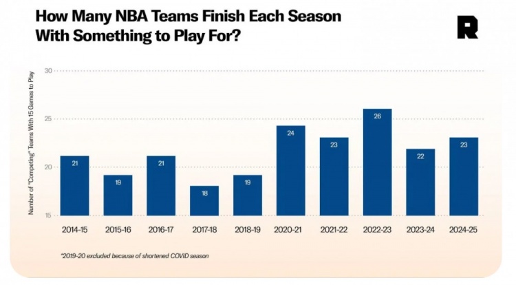 距離常規(guī)賽結(jié)束還有兩周半,NBA的30支球隊(duì)中有23支仍在為季后賽席位或附加賽資格奮戰(zhàn),這要?dú)w功于2019年實(shí)施的新版樂透抽簽概率規(guī)則和2021年引入的附加賽制度。聯(lián)盟的初衷是讓更多球隊(duì)在三月和四月保持競(jìng)爭(zhēng)動(dòng)力,好消息是:這招奏效了!壞消息是:仍有球隊(duì)在絞盡腦汁對(duì)抗聯(lián)盟辦公室(甚至違背基本體育精神),只為追逐樂透高順位,以及可能改變球隊(duì)命運(yùn)的天賦新秀。