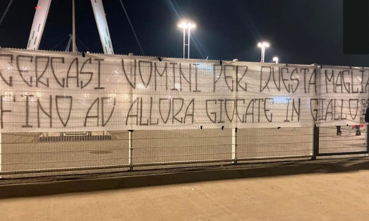 尤文球迷組織先是在球場集結(jié),隨后前往球隊(duì)賽前集訓(xùn)地表達(dá)不滿。球迷在球場外掛出兩條批評性橫幅,一條強(qiáng)調(diào)“你們所有人都只是過客,而我們是足球的歷史”,另一條則直接批評球員“為這件球衣尋找真男人”。