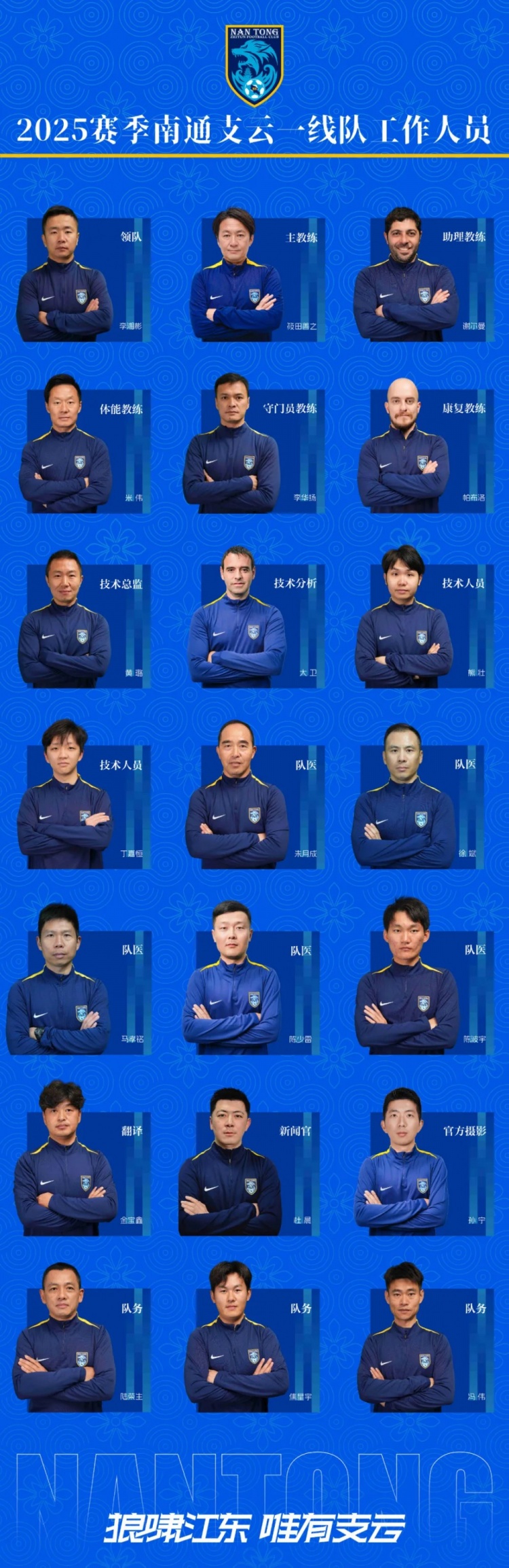 南通支云2025賽季一線隊(duì)大名單正式出爐!煥然一新的隊(duì)伍,期待與你一道,在綠茵賽場(chǎng)書寫屬于南通的藍(lán)色篇章,攜手完成賽季目標(biāo)。為南通,我們一起戰(zhàn)斗!戰(zhàn)斗!戰(zhàn)斗!