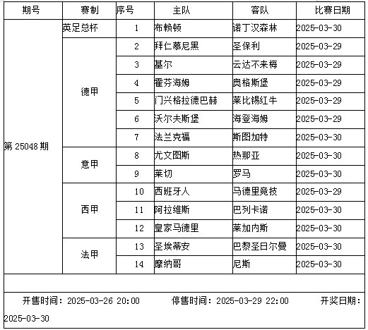本周末,歐洲各大聯(lián)賽陸續(xù)開打。傳足勝負(fù)彩游戲第25048期競猜對(duì)陣中,拜仁、尤文、馬競和皇馬陸續(xù)出戰(zhàn)。國際比賽日后,需多留意“FIFA病毒”對(duì)俱樂部的影響。