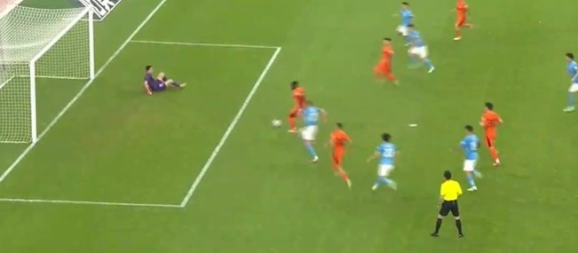 第9分鐘,云南獲得點(diǎn)球!胡睿寶禁區(qū)身后鏟倒葉楚貴犯規(guī),隨后裁判經(jīng)過(guò)var提示判罰點(diǎn)球,奧斯卡主罰點(diǎn)球被撲出,隨后跟上補(bǔ)射破門,深圳0-1云南玉昆。↓