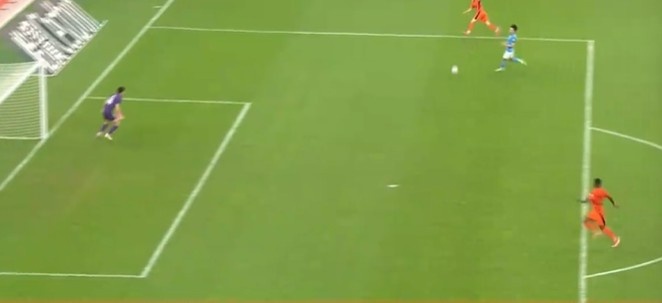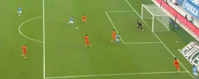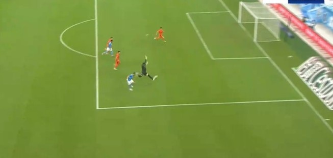第25分鐘,列昂索前場(chǎng)接直塞球過(guò)掉馬鎮(zhèn)后推射被門線解圍。↓