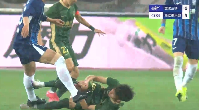 03月28日訊 中超第3輪,武漢三鎮(zhèn)vs浙江。比賽第47分鐘,鄭凱木從身后踢倒王鈺棟,同時(shí)在王鈺棟倒地后,鄭凱木落地正好踩中王鈺棟腳踝,王鈺棟痛苦倒地。